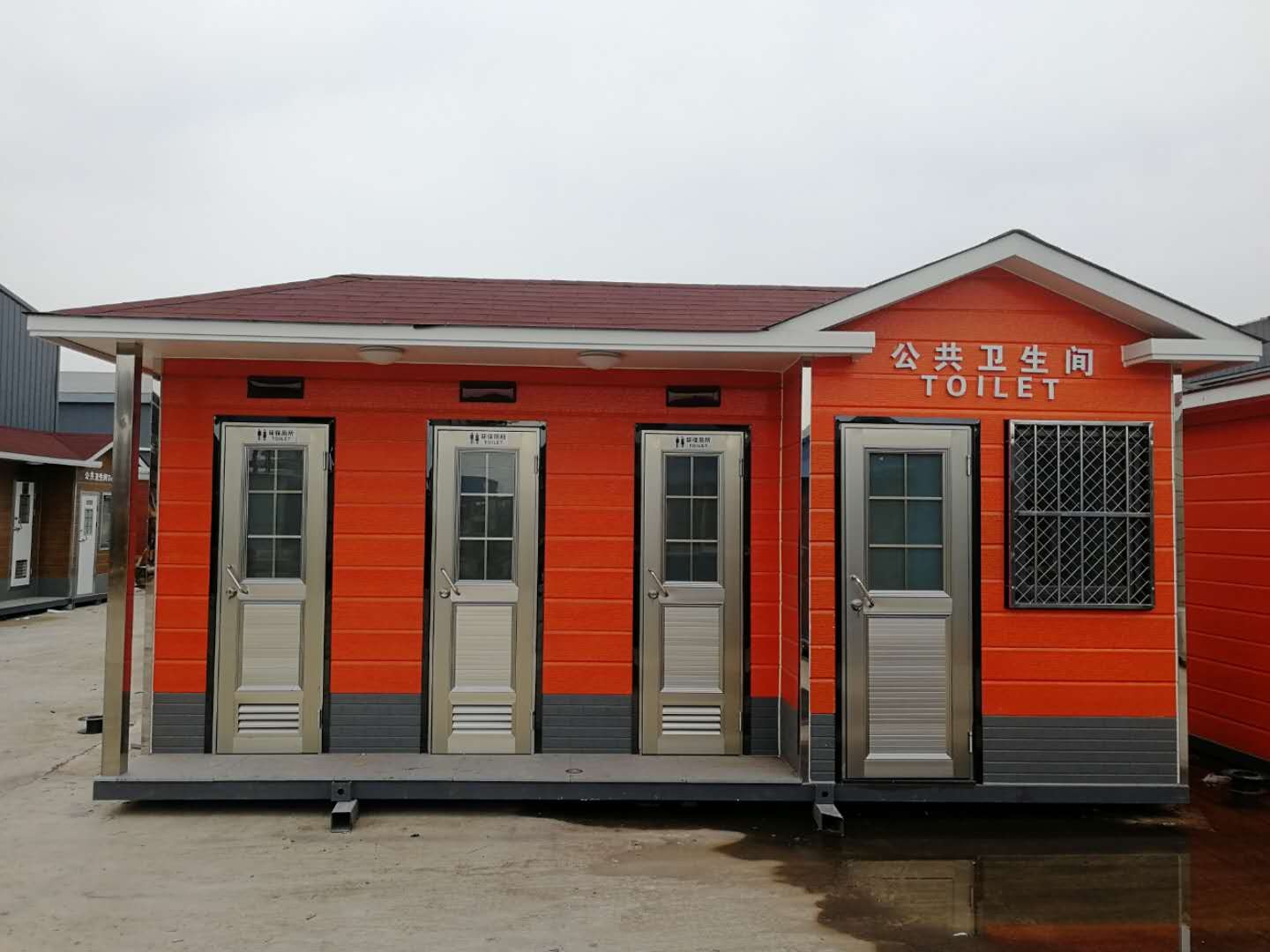 門窗為塑鋼(或不銹鋼)型材,經專業加工,密封效果好。地上為雙層地板,以實木地板打底,表層鋪防滑石英地磚,防潮、耐腐蝕。廁具局部選用蹲便規劃,純機械原理,腳踩自動打包封裝。儉省空間并避免穿插感染,選用高級質料,高強度、不老化、外表經防滑處置,不管北方高寒區域或南邊潮濕區域均能正常運用。