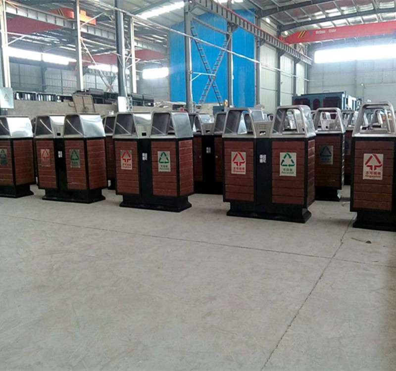 環保分類鋼木垃圾桶桶身可選用實木、防腐木、塑木等環保材料;內桶采用加厚鍍鋅板,防腐防銹能力強;桶架采用冷軋鋼板,經過酸洗除銹噴粉高溫烤漆處理。整體美觀大方、堅固耐用。